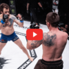 Paderborn gegen Düsseldorf hieß es im vierten Kampf des Abends. Hier stiegen Ahma Omarov und Iwan Tagner in den Cage. Und die beiden Weltergewichtler fighteten sinnbildlich um ihr Leben. Es wird ein intensiver Kampf, in dem beide mehrmals versuchen den Gegner zu Boden zu bringen. Schließlich liegen beiden auf der Matte übereinander, wobei Omarov die Guard Position hält und einen Guillotine Choke ansetzen kann, der in ein Referee Stoppage mündet. Der Paderborner gewinnt.
