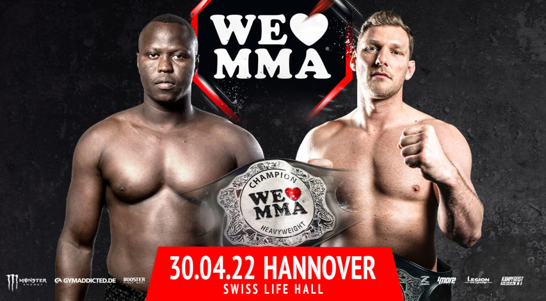 Nach zwei Jahren Pandemie-bedingter Pause kommt „Deutschland härteste Liga“ (lt. Bild Zeitung) endlich wieder nach Hannover. Am 30. April findet We Love MMA 57, eine der größten Mixed Martial Arts-Serie in Europa, zum siebenten Mal in der Swiss Life Hall statt. Und zum Comeback steht gleich der Titelfight-Kracher der schweren Jungs auf dem Programm: