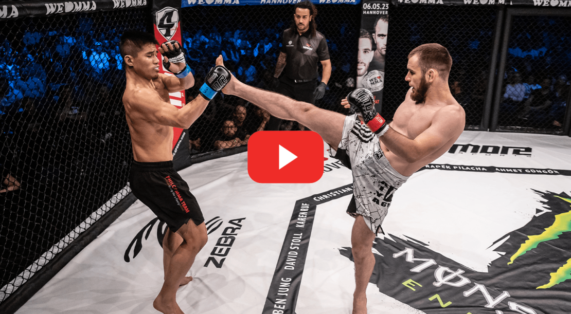 Der erste Kampf der Maincard stand auf dem Programm. Das SaiyaGym schickte Gabriel Illarionovin den Cage. Er traf auf Chi Chow vom Philco MMA Team Hannover. Nach einem guten Ringkampf holt sich Illarionov den Sieg nach 1,5 Runden.
