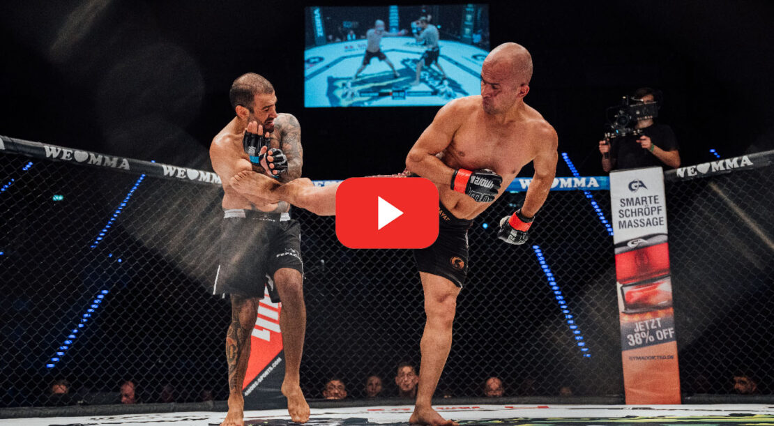 Nach seiner Niederlage im letzten Federgewichts-Titelkampf bei We Love MMA 65 in Hannover war Amir Shah Bayat vom VFL Wolfsburg darauf aus, wieder auf die Siegerstraße zurückzukehren. Doch sein Gegner Ömer Cankardesler von FuriousFFM war nach der kurzfristigen Absage des geplanten Kampfes bei We Love MMA 66 um so motivierter. Und Cankardesler bestimmte das Duell in der ersten Runde am Boden. In den zweiten fünf Minuten versuchte Bayat seinen Gegner mit Tritten und Schlägen auf Distanz zu halten, die durchaus Wirkung zeigten. Aber zum Ende konnte Cankardesler den Wolfsburger doch wieder zu Boden ringen. Die finale Runde bestimmte Bayat mit Punches und Kicks. Doch musste der Kampf schließlich durch eine Knieverletzung von Cankardesler abgebrochen werden, der sich bei einer Defensivaktion das Knie verdrehte. Nach Punkten hätte Bayat den Kampf gewonnen, doch der wollte aus Respekt vor seinem Gegner das Ergebnis nicht anerkennen, wodurch es keinen Sieger gab.