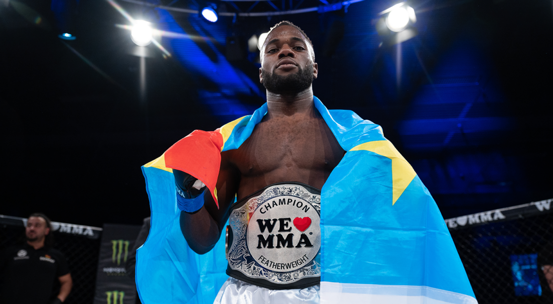 Bis dato gab es noch keinen Gürtelfight in der Federgewichtsklasse. Jetzt war die Zeit gekommen. Die beiden Titelaspiranten waren der ungeschlagene Lokalmatador Joel Batobo von Munich MMA und Dimitrij Isaakvon Fit&Fight Kiel. Der Kieler mit ukrainischen Wurzeln hatte schon vor dem Kampf verkündet, dass er seine Börse für Opfer des Ukraine-Krieges spenden wird und erntete dafür überschwenglichen Applaus von Münchener Publikum. Im Kampf war der Kieler aber voll fokussiert. Das war auch Batobo, der direkt mit einigen Schlägen erste Wirkungstreffer landen konnte und Issak dann zu Boden zwang. Dort war der Kampf nach 2:38 Minuten der ersten Runde per Rear Naked Choke beendet. Joel Batobo krönte sich so zum erstenWe Love MMA Champion im Federgewicht und wurde von seiner Homecrowd frenetisch gefeiert.