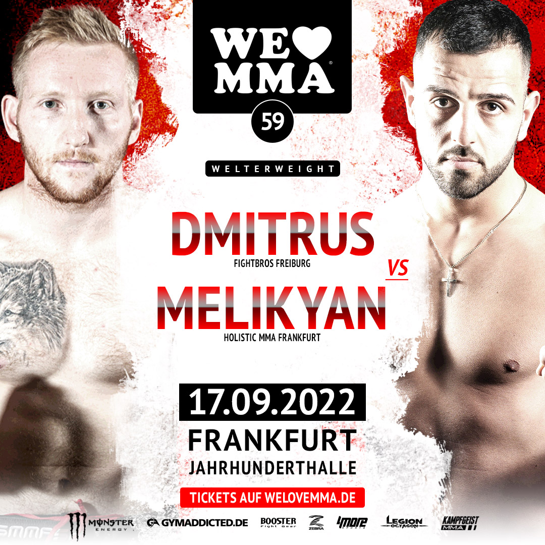 Mit Robert Dmitrus von den Fightbros Freiburg und Vardan Melikyan von Holistic MMA Frankfurt treffen im Weltergewicht zwei bullige Männer aufeinander, deren Skillsets nicht besser füreinander gemacht sein könnten. Zwei Fighter, deren Stärken vor allem im Bodenkampf liegen. Dmitrus, der von MMA Pionier Gregor“The Bulldozer“ Herb betreut wird, hat ausgeprägte Fähigkeiten im Judo, Ringen, BJJ und MMA. Auf der anderen Seite Melikyan, der bislang in seiner Profilaufbahn noch nicht sonderlich vom Glück verfolgt war. Als Amateur kam der Sportler vom Holistic MMA Frankfurt auf 11 Siege in 13 MMA Kämpfen. Daran will er jetzt als Profi anknüpfen.