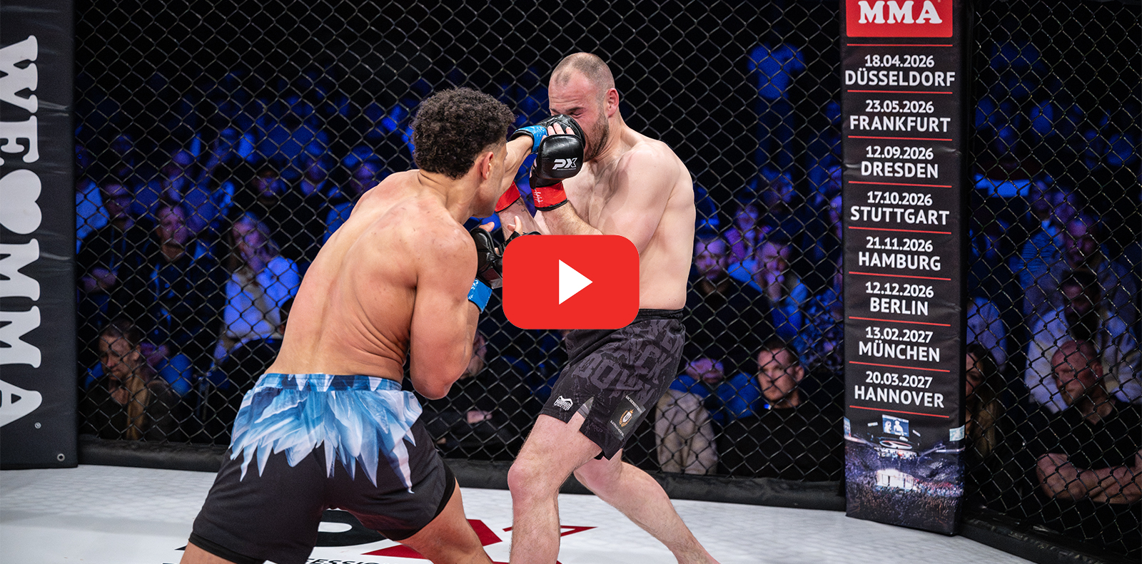 Auch Levy Amoakohene (Fight School Hannover) sorgte für großen Jubel beim Heimpublikum. Im Mittelgewichtsduell gegen Andre Kähler (MMA Lübeck) zeigte er eine beeindruckende Comeback-Leistung. Nach einem intensiven Beginn drehte Amoakohene den Kampf noch in der ersten Runde mit einem wirkungsvollen Highkick. Mit den darauffolgenden präzisen Treffern sicherte er sich schließlich einen vorzeitigen Sieg durch K.o. Dieser spektakuläre Finish machte Levy Amoakohene zu einem der gefeierten Kämpfer des Abends in Hannover.