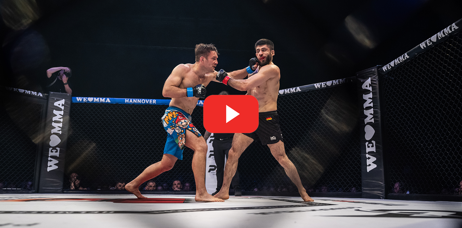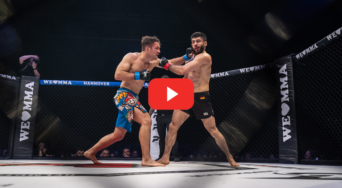 Den krönenden Abschluss des Abends bildete der Titelkampf im Leichtgewicht zwischen Aria Azarnoosh (Combat Team Bonn) und Tobias Eylitz (Fightschool Hannover). Nach einem vorsichtigen Beginn mit Clinchphasen an der Käfigwand entwickelten sich im Verlauf des Kampfes intensive Schlagwechsel. Azarnoosh punktete mit schönen Kombinationen, während Eylitz wiederholt mit Takedowns antwortete. In der zweiten Runde öffnete Azarnoosh mit präzisen Treffern eine Platzwunde bei seinem Gegner, doch Eylitz ließ sich nicht beirren, brachte den Kampf erneut zu Boden und punktete auch im finalen Durchgang mit effektiven Treffern und Takedowns. Nach drei spannenden Runden sprach die Jury Eylitz den Sieg zu – ein verdienter Erfolg und der Titel für den stärksten Zahnarzt aus Hannover und ganz Deutschland.