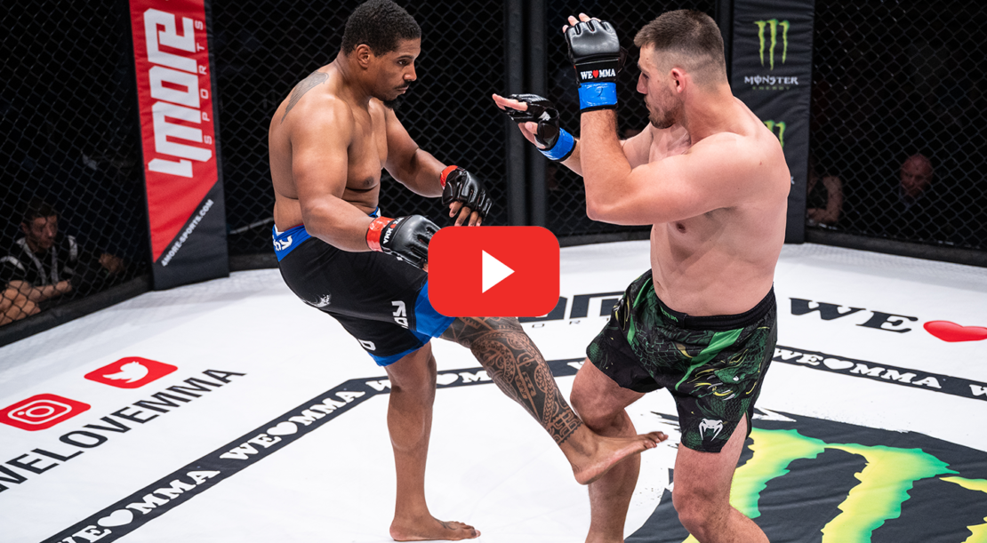 Aber der Reihenfolge nach. Im ersten Kampf des Abends trafen Christian Nold (Nippon/BA Army Schweiz) und Georg Bilogrevic (Maingym) aufeinander. Nold, berühmt und berüchtigt für seinen Rear Naked Choke, hat seit seinem Käfigdebüt nur Siege eingefahren. Für Bilogrevic stand viel auf dem Spiel. Er war zum Siegen verdammt, nachdem er seinen letzten Fight verlor. Nold konnte ein erstes Zeichen setzen und Bilogrovic zu Boden werfen, musste dann aber nach einem unsauberen Tieftritt von Bilogrevic erst einmal nach Luft schnappen. Als es weiter ging, landete Bilogrevic einen harten Kick am Kopf von Nold, der den zu Boden brachte. Dort bearbeitet Bilogrevic seinen Gegner weiter mit Schlägen. Nach 2:44 Minuten in der ersten Runde musste der Ringrichter den Kampf dann zugunsten des Maingym Fighgters beenden.