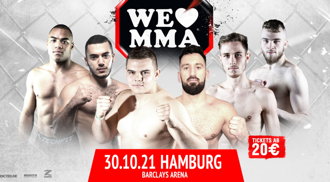 Für Hamburger Kampfsportfans wird es ein heißer Oktober – We Love MMA, die härteste Liga Deutschland (lt. Bild) baut am 30.10.2021 zum siebten Mal ihren Cage in der Barclays-Arena auf. 12 packende Fights mit einigen der besten MMA Sportlern aus Deutschland und internationalen Hochkarätern stehen auf dem Programm. Die erste Paarungen werden jetzt veröffentlicht.