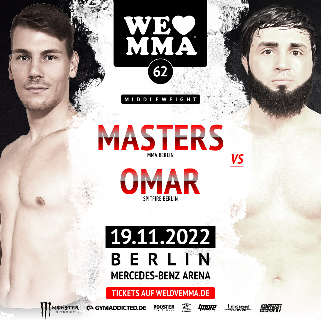 Am 19. November 2022 heißt es We Love MMA 62 – Der MMA-Battle of Berlin in der Mercedes-Benz Arena.Einlass ist für alle MMA-Fans ab 18 Jahren möglich. Karten für das Kampfsportspektakel in Berlin und alle anderenWe Love MMA Events gibt es ab 20,00 Euro (incl. VVK-Gebühr) unter der Tickethotline 01806-570070 oder auf www.welovemma.de.