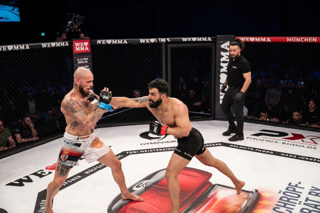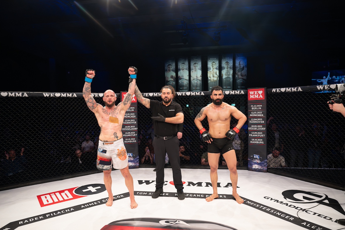 München, 15. März 2025 – Am Samstag eröffnete WE LOVE MMA, die renommierteste Kampfsportserie Deutschlands in der kleinen Olympiahalle in München die neue Saison 2025. Vor ausverkauftem Publikum fanden insgesamt elf mitreißende Fights statt, die die anwesenden Zuschauer in ihren Bann zogen. Besonders der Hauptkampf im Weltergewicht zwischen Iman Samarghandi (Ta Force Eckental) und Kevin Hangs (Kampfgeist Gym Rellingen) sorgte für Spannung und Begeisterung.