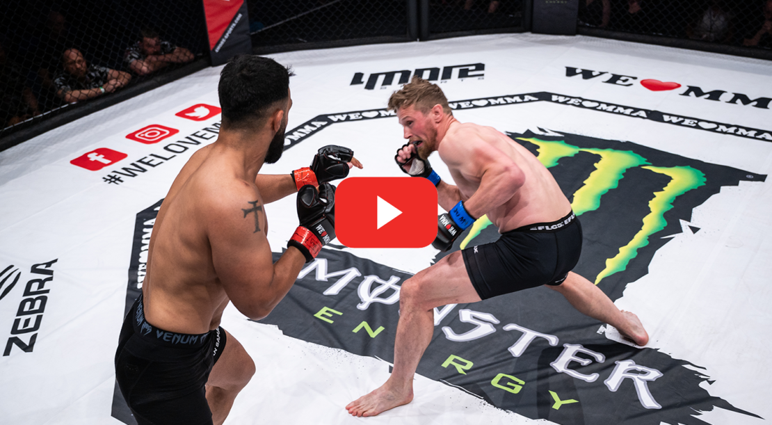 In einem weiteren Mittelgewichtskampf stiegen Iman Samarghandi (Ta Force) und Rene Runge (Gorilla Fighthouse MMA) in den Cage. Wobei Runge, mit Hawaihemd und Sonnenhut beim Einlauf bekleidet, eher in den Käfig „surfte“. Die zwei Fighter begrüßten sich auch nicht zum ersten Mal im Cage. 2019 standen sich schon mal gegenüber. Damals sahen die Punktrichtern Runge knapp vorne. Auch dieses Mal schenkten sich beide nichts. Allerdings bearbeitete Runge seinen Gegner am Gitter mit mehr Druck und konnte sich schließlich in eine Position bringen, in der er harte Treffer auf Samarghandi einprasseln ließ. Nach 3:34 Minuten musste der Ringrichter den Kampf mit TKO abrechnen. Die Massen feierten den Sunnyboy vom Gorilla Fighthouse, der im Interview nach vier Siegen bei We Love MMA seinen Anspruch auf einen Titelkampf einforderte.
