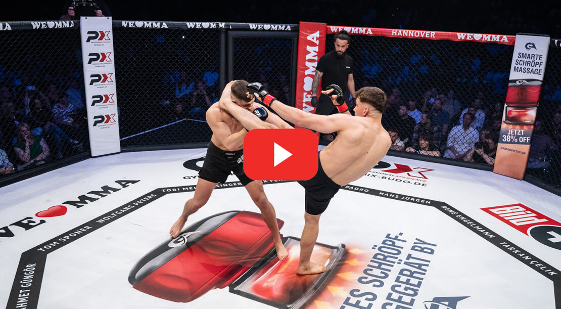 Wiktor Tymrek (Fightschool Hannover) beendete den letzten Vorkampf mit wuchtigem Ground-and-Pound gegen Jahn Blaszejewski (Lee Gym Hannover) durch T.K.O.