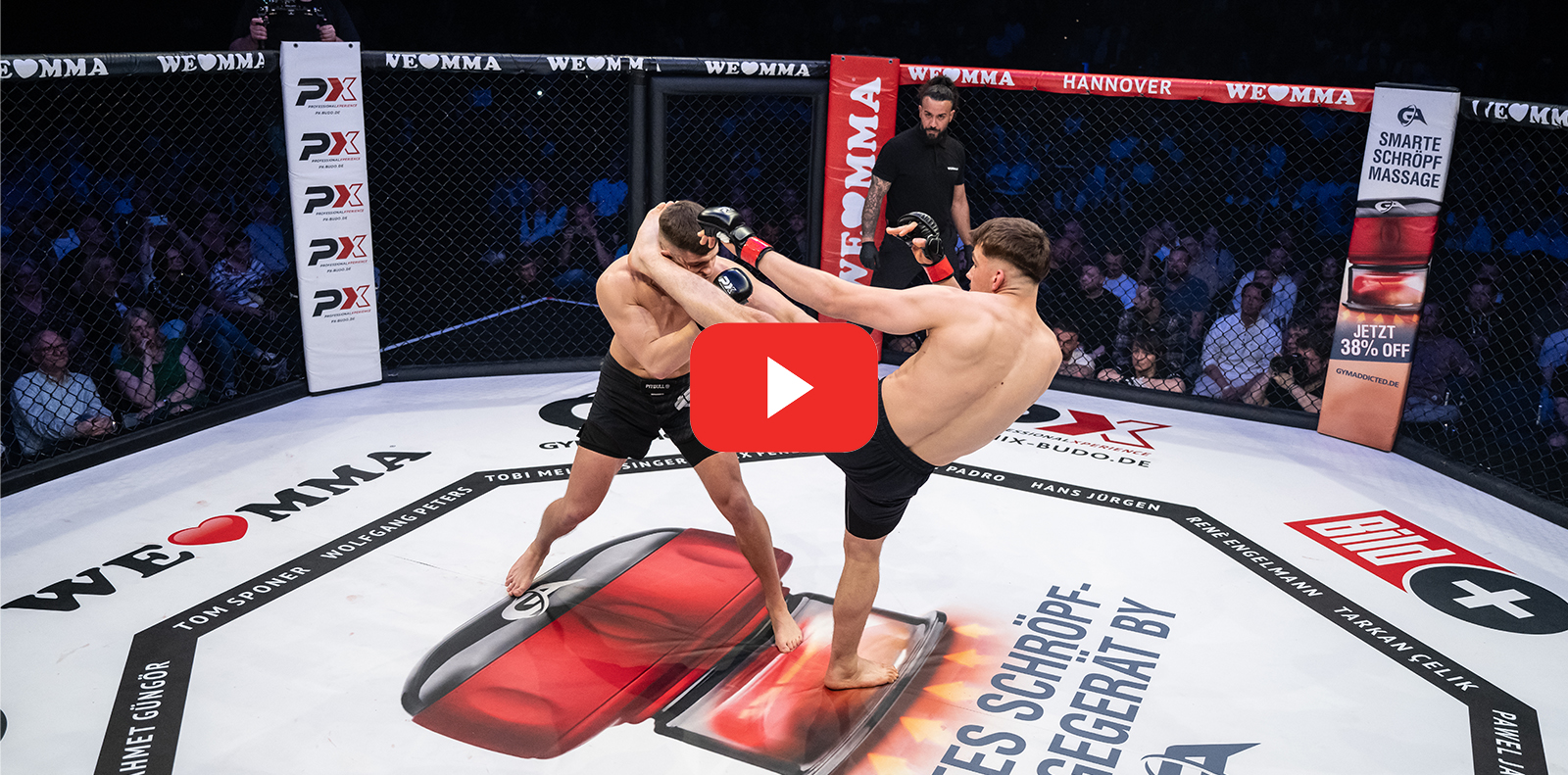 Wiktor Tymrek (Fightschool Hannover) beendete den letzten Vorkampf mit wuchtigem Ground-and-Pound gegen Jahn Blaszejewski (Lee Gym Hannover) durch T.K.O.