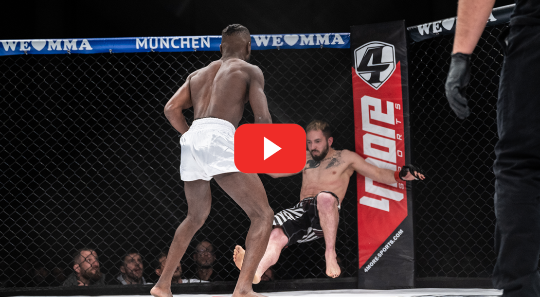 Bis dato gab es noch keinen Gürtelfight in der Federgewichtsklasse. Jetzt war die Zeit gekommen. Die beiden Titelaspiranten waren der ungeschlagene Lokalmatador Joel Batobo von Munich MMA und Dimitrij Isaak von Fit&Fight Kiel. Der Kieler mit ukrainischen Wurzeln hatte schon vor dem Kampf verkündet, dass er seine Börse für Opfer des Ukraine-Krieges spenden wird und erntete dafür überschwenglichen Applaus von Münchener Publikum. Im Kampf war der Kieler aber voll fokussiert. Das war auch Batobo, der direkt mit einigen Schlägen erste Wirkungstreffer landen konnte und Issak dann zu Boden zwang. Dort war der Kampf nach 2:38 Minuten der ersten Runde per Rear Naked Choke beendet. Joel Batobo krönte sich so zum erstenWe Love MMA Champion im Federgewicht und wurde von seiner Homecrowd frenetisch gefeiert.