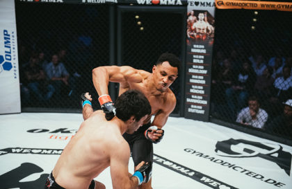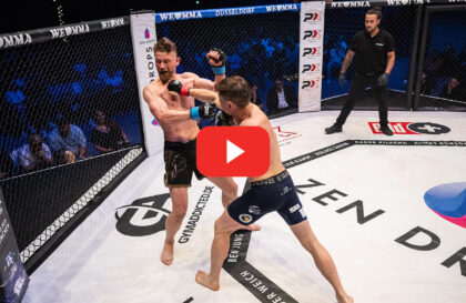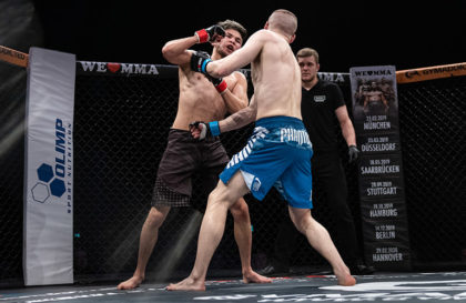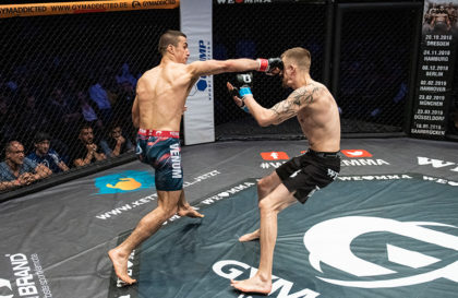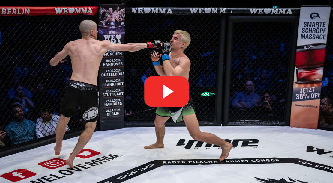 Im Leichtgewicht duellierten sich Krystian Jakowicz von der Akademia Sportow Walki Wlanow und Nikodem Miastkowski von Spitfire Berlin. Der Pole startet aggressiv und treibt den Berliner durch den Ring. Dabei platzierte er einige Punches. Zum Ende der Runde kann Nikodem den Polen auf die Matte bringen. In Runde zwei geht es schneller zu Boden, wo sich der Berliner versucht die Guard Position zu sichern. Nach ein Paar Treffern am Kopf des Polen, kriegt Nikodem den Rücken des Polen und gewinnt per Rear Naked Choke.