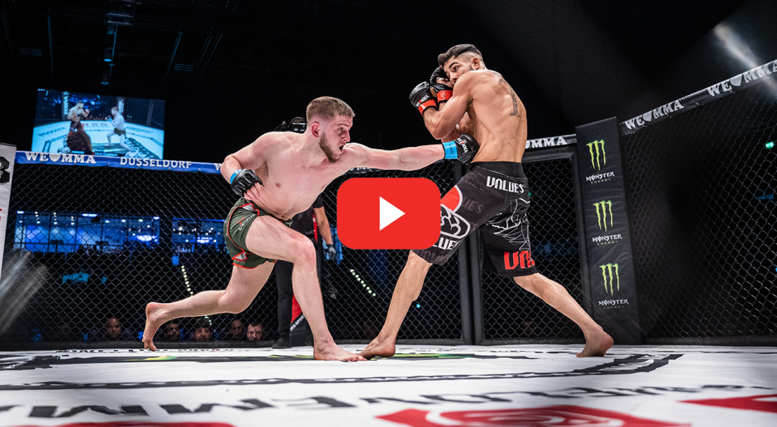 Jetzt war die Zeit für den Titelkampf gekommen. We Love MMA Titelverteidiger Islam Djabrailov von der Fightschool Hannover gegen Manuel Rodriguez aus Sevilla. Nach einem erstem Schlagabtausch im Strand, verlagerte Islam den Kampf auf den Boden und dominierte die ersten fünf Minuten. In Runde 2 meldete sich der Spanier aber mit einer harten Faust an den Kopf Djabrailovs zurück. Nun wollte auch Rodriguez in den Bodenkampf, aber Islam behauptete die Guard-Position. Nachdem sich der Spanier noch einmal aufrichten konnte, konterte Islam mit einem unglaublichen Takedown, der Rodriguez fast das Genick brach. Und um auch die letzten Zweifel an der Titelverteidigung im Keim zu ersticken, setzte der Hannoveraner am Boden mit krachenden Schlägen nach. Somit war nach 4:42 Minuten der zweiten Runde auch der achte und letzte Kampf des Abends vorzeitig beendet. Die Menge feierte Djabrailov als alten und neuen We Love MMA Champion im Bantamgewicht.