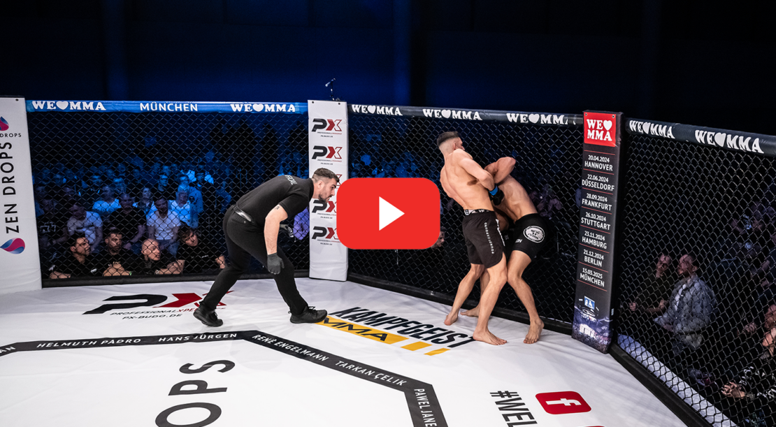 Der erste MMA Fight des Abends stieg im Anschluss zwischen Marat Nesser von der Fight Fusion Regensburg und Indrit Tahiri von Pound4Pound München. Und bei den beiden Weltergewichtlern ging es gleich zur Sache. Indrit startet mit einem Kick zum Kopf, Marat kontert mit Fäusten und will den Takedown. Doch dabei kann der Münchener einen Guillotine Choke ansetzen, aus der sich der Regensburger aber befreien kann. In der Folge verletzt sich Indrit Tahiri aber an der Wade, was zum Abbruch des Kampfes führt und Marat Nesser zum Sieger macht.