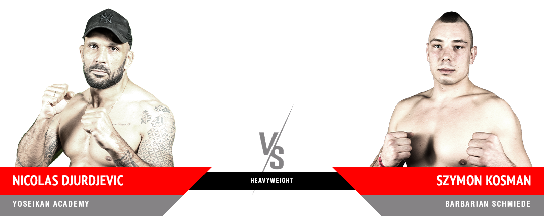 Krachende Fightaction wird es bei Nicolas „Chef“ Djurdjevic (Yoseikan Academy) gegen Szymon „Barbarian“ Kosman (Barbarian Schmiede) geben. Djurjevic, der unlängst bei We Love MMA Düsseldorf im Februar den Sieg einheimste, zeigt seinem Gegner gern, wer der „Chef“ im Oktagon ist. Doch auch Kosman lässt während des Kampfes gerne den Barbaren raushängen und ist bislang in seiner Pro Laufbahn ungeschlagen.