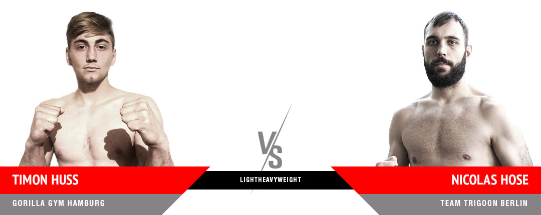 Der Berliner Nicolas Hose und der Hamburger Timon Huss lassen in Hannover die Fäuste fliegen. Die beiden Halbschwergewichtskämpfer sollten bereits im Herbst 2022 in Berlin aufeinandertreffen. Huss, der frisch gebackene deutsche Meister im Amateur-MMA vom Gorilla Gym Hamburg musste seiner Zeit leider krankheitsbedingt kurzfristig absagen. Nicolas Hose machte aus der Not eine Tugend, nahm spontan einen Ersatzgegner an und feierte vor eigenen Publikum einen überzeugenden Erstrundensieg. Nun steht endlich das ursprüngliche Duell der beiden Kontrahenten an.