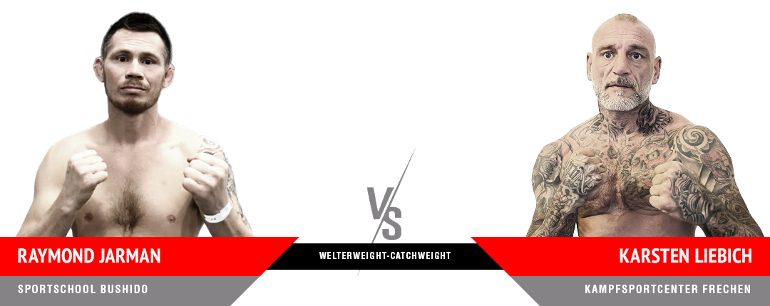 Mit Karsten Liebich und Raymond Jarman treffen zwei wahre Veteranen aufeinander. Der Erfahrungsvorteil dürfte eindeutig für Jarman sprechen. Der Niederländer stand bereit über 70-mal im Käfig und machte zuletzt bei We Love MMA 63 eine gute Figur, als er das deutsche Urgestein Sebastian Baron in die Schranken verwies. Sein gegenüber Karsten „The Bulldog“ Liebich avanciert hingegen langsam zum Publikumsliebling bei We Love MMA und hat mit 43 Jahren noch lange nicht genug. Harte Hände und nicht enden wollender Kampfgeist sind das Elixier, was Liebich für seinen Kontrahenten angerührt hat.