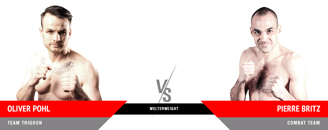Im Weltergewicht duellieren sich die MMA-Kämpfer Oliver Pohl vom Team Trigoon und Pierre Britz vom Combat Team. Britz feierte bei We Love MMA 60 sein Debut, Pohl tut dies nun in Hannover. Beide haben also ordentlich ihr Können unter Beweis zu stellen und werden sich einen knallharten Kampf liefern.