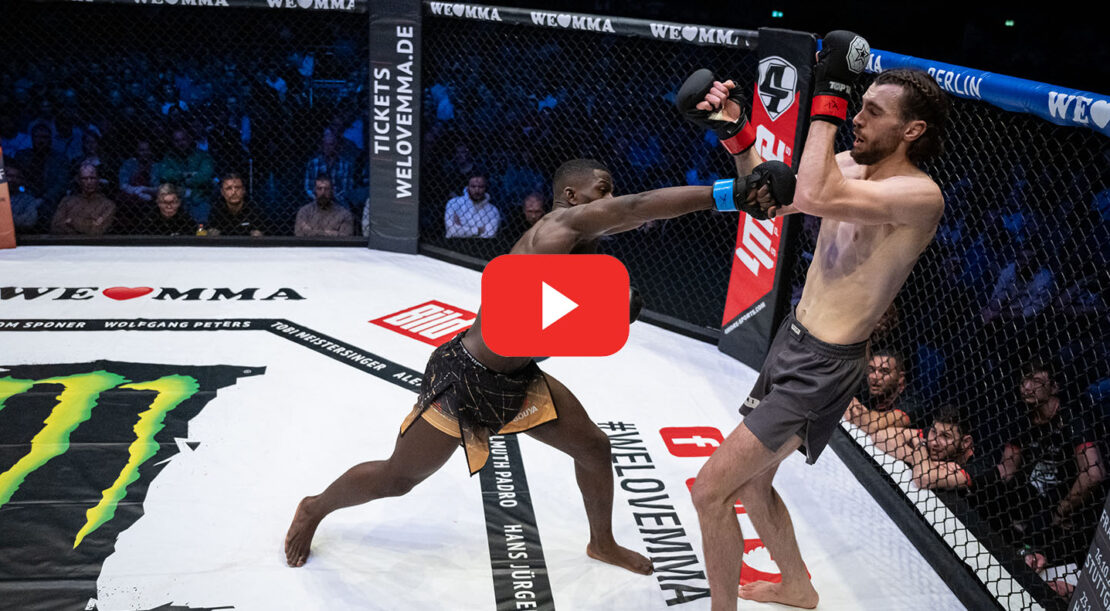 Der vierte Kampf wurde im Weltergewicht zwischen Paul Klein (Combat and Sports Club Düsseldorf) und Oneel Agbanama (Spitfire Berlin) ausgetragen. Der Düsseldorfer spielt seine Längenvorteile bei einigen Kicks aus, aber der Berliner kommt immer wieder mit Fäusten durch die Deckung und setzt auch noch einen Takedown. In Runde zwei rutscht der Berliner bei einem Konter aus und kommt in Bedrängnis. Dadurch entwickelt sich ein abwechslungsreicher Kampf am Boden. Erst kann der Berliner ein Paar Treffer landen, dann findet er sich im Rear Naked Choke vom Düsseldorfer, aus dem er sich aber rauswinden kann. So geht es in die dritte Runde. Erst jubeln die Zuschauer bei einem Goundandpound von Oneel, doch Paul kann vom Boden einen massiven Kick am Kopf des Berliner landen. Doch Oneel deckt seinen Gegner weiter mi Schlägen ein, was ihm schließlich den Sieg nach Punkten einbringt.