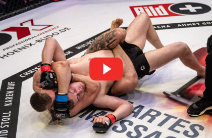 Im letzten Kampf vor der Pause feierte Robert Bisso vom Infinitus MMA Stockstadt sein Debüt gegen Veselin Dimitrov vom David Gym Zürich. Bisso sichert sich schon zu Beginn die Mount Position und beendet den Kampf mit hartem Ground-and-Pound in der ersten Runde.