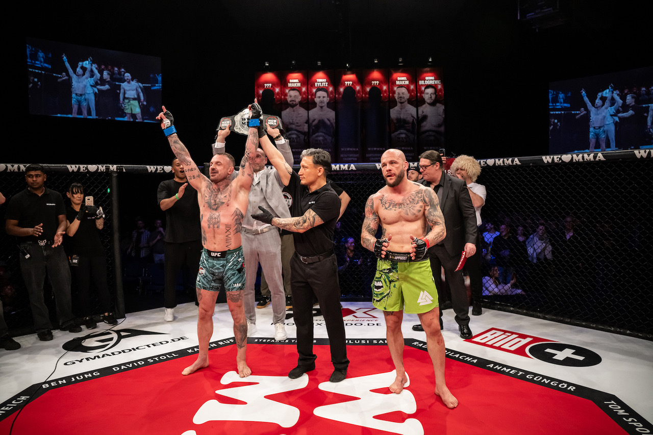 Hannover, 22. März 2026 – Bei WE LOVE MMA 86 in Hannover erlebten die Zuschauer zehn intensive Duelle mit mehreren vorzeitigen Entscheidungen und starken Auftritten der Lokalmatadoren. Den Höhepunkt des Abends setzte Daniel Makin (Lee Gym Hannover), der den Titelkampf im Mittelgewicht gegen Kevin Hangs (Kampfgeist Gym Reilingen) bereits nach 42 Sekunden gewann.