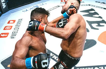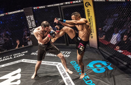Als Sebastian Mandlinger, Schützling von GZSZ-Star Mario Wittmann (MMA Mundial Ingolstadt) und Simon Schürger (Pound For Pound München) die Halle betraten, kochte die Stimmung zum ersten Mal über. Die erste Runde hatte Schürger Vorteile, der Mandlinger schnell zu Boden brachte und ihn aus der Guard Position dominierte. Doch der Münchern harrte die Runde bis zum Gongschlag aus. In der zweiten Runde bekamen die Zuschauer einen Standkampf par excellence serviert. Beide feuern Kicks und Punches zum Gesicht des Gegners raus. Doch das lässt das Blut in Mandlingers Gesicht spritzen, sodass der Ringrichter per Referee Stoppage den Kampf zugunsten von Schürger als beendet.