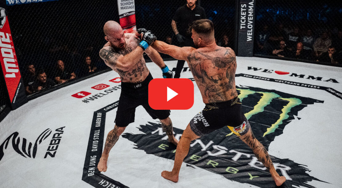 Sebastian Stallinger vom Munich Topteam gab in Stuttgart sein Debüt als MMA-Profi und stellte sich dem Local Hero Jörn Bayer vom Kongs Gym Stuttgart. Und bereits die erste Runde hatte es in sich. Bayer landete direkt einige harte Treffer bei Stallinger. Dann die wirkten auf den Münchener wie ein Wachrüttler, der seinerseits plötzlich nach einigen Treffer die Oberhand hatte. Exakt so ging es in der zweiten Runde weiter. Beide deckten sich mit Schlagsalven ein, die in einem Groundandpound für Stallinger endeten. Der Münchener hatte es bei seinem Profidebüt tatsächlich geschafft, den ersten Sieg zu holen. Dieses packende Duell honorierten die Zuschauer in der voll besetzten Porsche-Arena mit Standing Ovations.