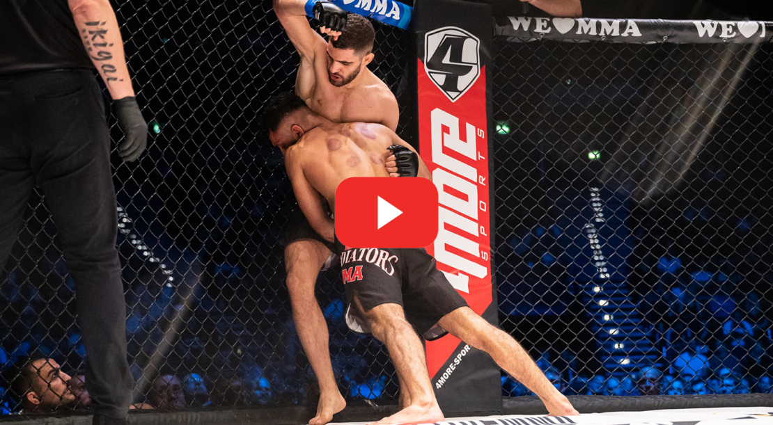 Gjoni Palokaj und Sultan Sulimani duellierten sich um den vakanten We Love MMA Federgewichts-Titel. Wie versprochen sollte es ein harter aber würdiger Schlagabtausch um einen der wichtigsten Titel im Deutschen MMA-Sport werden. Sultan dominierte die erste Hälfte von Runde 1. Doch dann übernahm Gjoni die Guard-Position. Sulimani fand sich auf dem Boden wieder, um musste die Hiebe und nachziehende Kniekicks von Palokaj ertragen. Nach nicht einmal einer Minute der zweiten Runde konnte Gjoni einen harten Treffer an Sulimanis Kopf laden, der denzu Boden beförderte und ein KO zur Folge hat. In einem phänomenalen Kampf holt sich Gjoni Palokaj so den We Love MMA Titel im Federgewicht.
