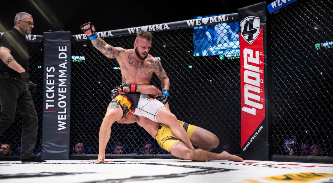 Im Co-Mainevent stehen zwei Könner ihres Fachs gemeinsam im Cage. BJJ Blackbelt Nicolas Djurdjevic aus Frankreich kann dabei auf drei siegreiche Kämpfe bei We Love MMA verweisen. Mit Frederic Vosgröne bekommt er es mit dem aufgehenden Stern der europäischen Grappling und BJJ Szene zu tun. Dass der Mann aus Düsseldorf dieses Game versteht wie kaum ein Zweiter, konnte er erst zuletzt bei We Love MMA 74 in Stuttgart unter Beweis stellen, als er mit Chris Fischer einen ebenfalls hoch gehandelten Kämpfer und Lokalmatador nach nur 16 Sekunden mit Hell Hook in die Schranken verwies. Der Kampf ist nicht weniger als eine direkte Bewerbung um die Krone im Schwergewicht, der voraussichtlich im Frühjahr stattfinden wird. Szymon Kosman aus Göpingen, seines Zeichens direkter Anwärter auf den Gürtel wird sich dabei direkt vor Ort einen ersten Eindruck auf seinen potentiellen Gegner gönnen.
