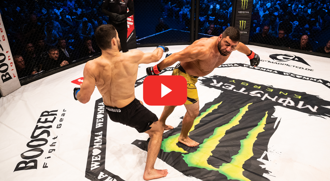 Das Jubiläum von We Love MMA sollte noch ein Comeback erleben. Selim Agaev, der nach über sieben Jahren in den Cage von „Deutschlands härtester Liga“ zurückkehrte, ist bekannt für seine KO-Attacken. Doch auch Veselin Dimitrov ist eine harte Nuss und schlägt seine Gegner gern ins Aus. Selim, der vom Publikum tosend angefeuert wurde, kontrollierte das Match. Mit gezielten Kicks verlagerte er das Duell immer wieder auf den Boden, wo er seine Vorteile hat. Mit einem schwerem Ellenbogen konnte sich Agaev nach 4:37 Minuten in der ersten Runde den Siegsichern.
