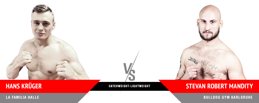 Darauffolgend kam es im nächsten Kampf zum Zusammentreffen von Hans Krüger (La Familia Halle) gegen Stephan Robert Mandity (Bulldog Gym Karlsruhe). Auch dieser Kampf verlief erfolgreich und Krüger ging erhobenen Hauptes als Sieger aus dem Oktagon. Bereits in der ersten Runde spritze das Blut nur so, drei Runden liefen dominiert von Krüger, obwohl Mandity zu Anfang die Nase vorne hatte. Krüger landete viele Hiebe und Kniekicks gegen Manditys Kopf und setzte sowohl zum Groundandpound, als auch zum Triangle Choke an, doch holte am Ende den deutlichen Punktesieg.