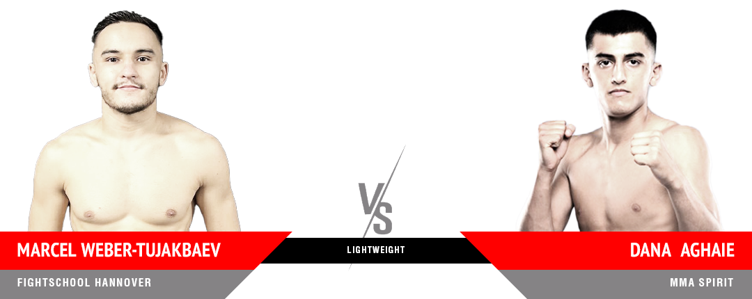 Im ersten Kampf der spektakulären Fightnight trafen das We Love MMA bekannte Gesicht Marcel Weber Tujakbaev (Fightschool Hannover) und Dana Aghaie (MMA Spirit Frankfurt) im Leichtgewicht gegeneinander an. Die ersten beiden Runde verliefen dominiert von Aghaie, welcher Marcel zu Boden brachte und dort hielt. Doch zu Beginn der zweiten Runde landete Marcel einen krassen Schlag gegen Aghaies Kopf, welcher ihn zu Boden brachte wodurch dieser kurz die Oberhand gewann. Durch seine offensive Art und die gut angewandten MMA-Tricks holte sich Aghaie dann den knappen Punktesieg.