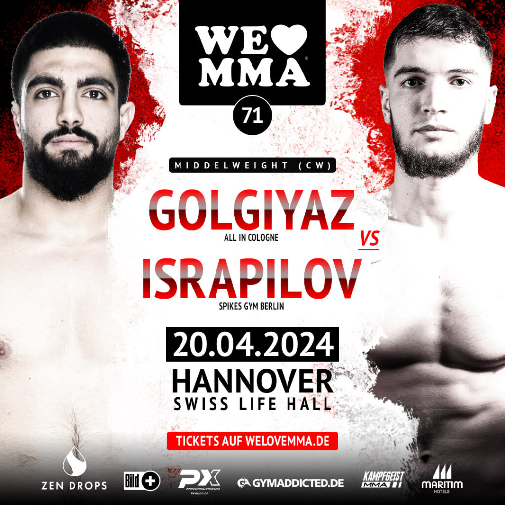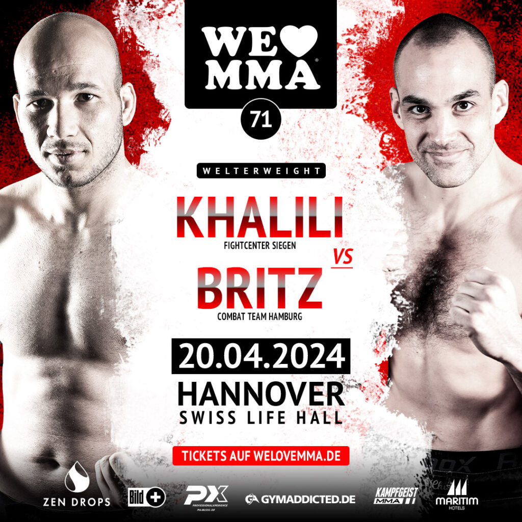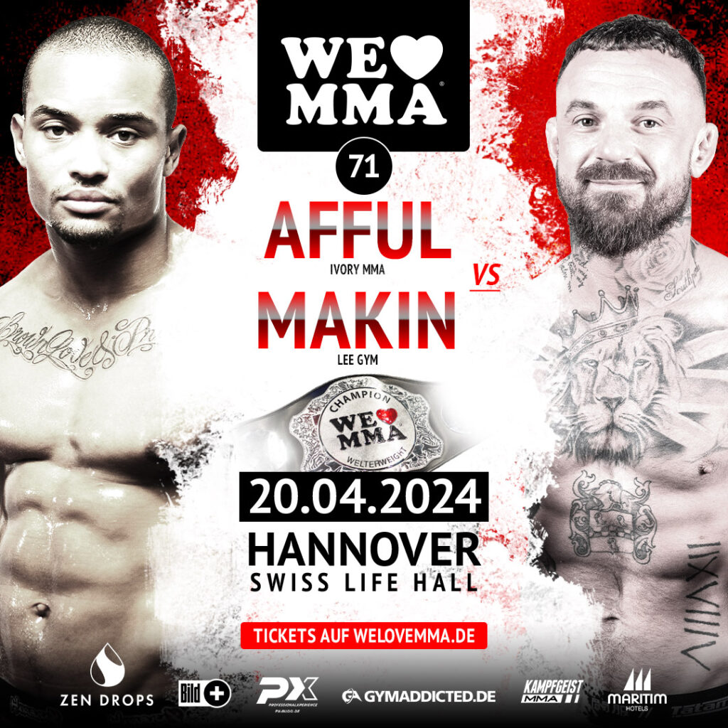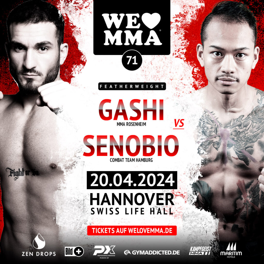Am 6. Mai ist „Deutschlands härteste Liga“ zurück in Hannover. We Love MMA, eine der größten Mixed Martial Arts-Serie in Europa, präsentiert zur 65. Ausgabe einen Monster Titelfight in der  Swiss Life Hall. Local Hero Gjoni Palokaj von der Fightschool Hannover kämpft gegen Amir Shah Bayat vom VFL Wolfsburg um die Krone im Federgewicht. Der Kampf steht unter dem Motto „Die Revanche“!