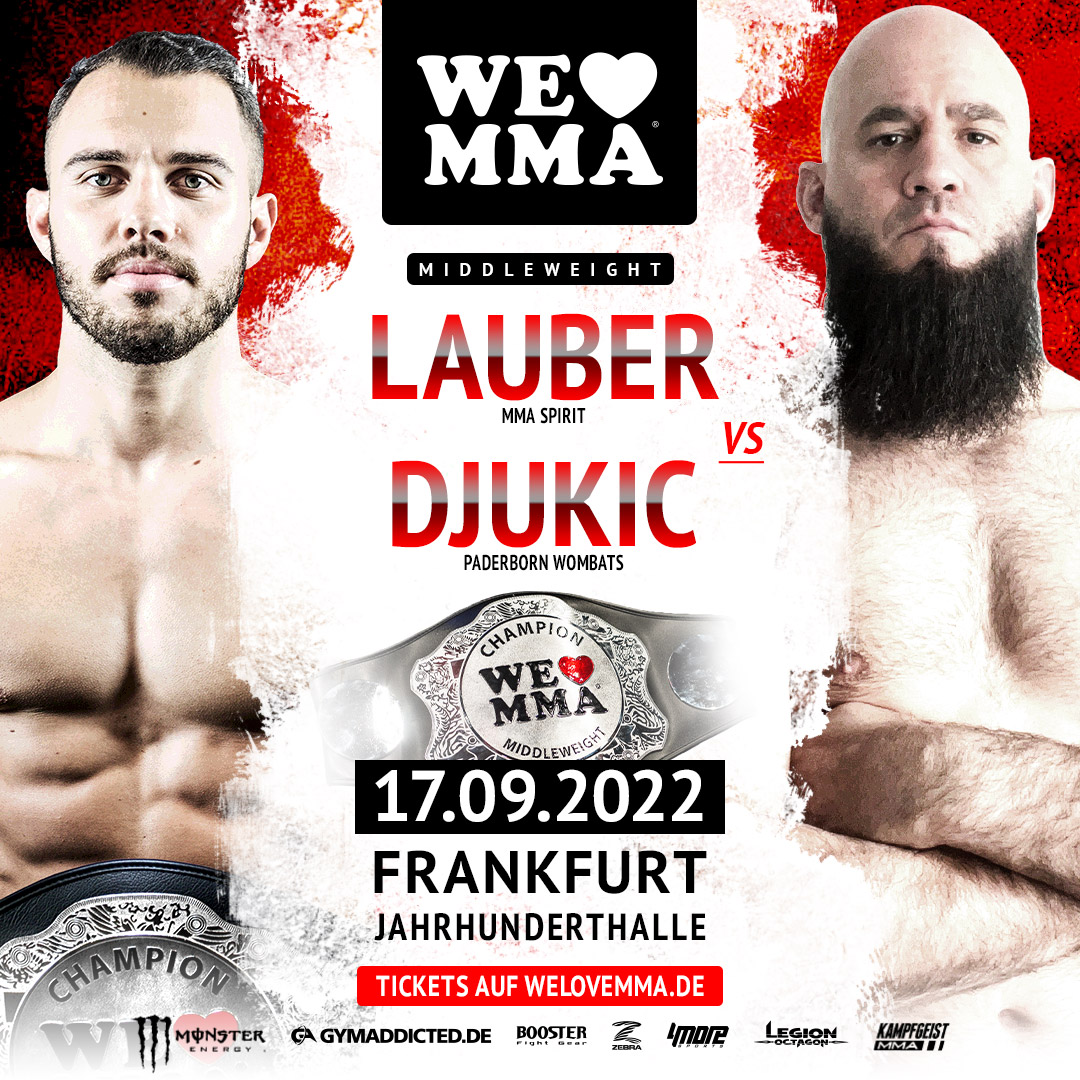 Knapp ein Jahr nach dem Leo Lauber vom MMA Spirit Frankfurt die Krone im Mittelgewicht vom mittlerweile in der UFC unter Vertrag stehenden Titelträger Dustin Stoltzfus übernommen hat, heißt es für den ungeschlagenen Champion Showtime in seiner Heimatstadt. Am 17.09.2022 wird der Platzhirsch zur Titelverteidigung in den Cage von „Deutschlands härtester Liga“ antreten. Leicht wird die Aufgabe für Leo Lauber nicht. Denn mit Alexander Djukic steht ihm ein erfahrener Mann gegenüber, der seit fast 10 Jahren im Profigeschäft unterwegs ist und bereits alle relevanten Profiligen in Deutschland durchpflügt hat. Der Mann von den Paderborn Wombats, der mit zwei Siegen in Folge im Gepäck antritt, kommt nicht nach Frankfurt, um Geschenke zu verteilen.