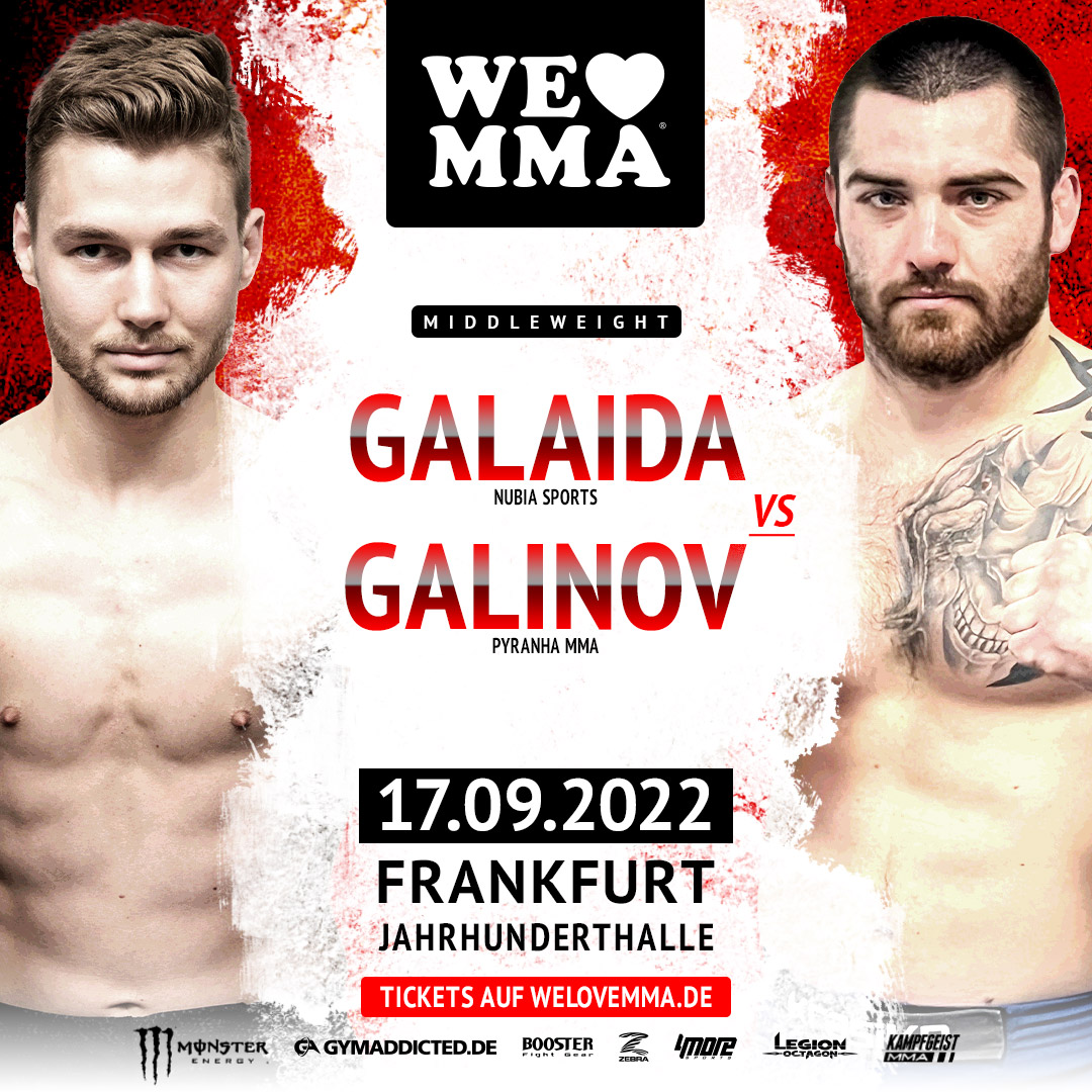 Am 17. September 2022 wird Frankfurt/M. zur MMA-Hauptstadt Deutschlands. Dann steigt die Premiere von „Deutschlands härtester Liga“ (lt. Bild-Zeitung) in der myticket Jahrhunderthalle. We Love MMA ist eine der größten Mixed Martial Arts-Serien in Europa und kommt mit der 58. Ausgabe erstmals in die Main-Metropole. Jetzt stehen die ersten Fights für das große Kampfsportspektakel fest und unsere hessischen Mixed Martial Arts Fans dürfen sich auf knallharte Duelle inklusive Titelkampf des Lokalmatadoren und einem Frauenfight freuen.Knapp ein Jahr nach dem Leo Lauber vom MMA Spirit Frankfurt die Krone im Mittelgewicht vom mittlerweile in der UFC unter Vertrag stehenden Titelträger Dustin Stoltzfus übernommen hat, heißt es für den ungeschlagenen Champion Showtime in seiner Heimatstadt. Am 17.09.2022 wird der Platzhirsch zur Titelverteidigung in den Cage von „Deutschlands härtester Liga“ antreten. Leicht wird die Aufgabe für Leo Lauber nicht. Denn mit Alexander Djukic steht ihm ein erfahrener Mann gegenüber, der seit fast 10 Jahren im Profigeschäft unterwegs ist und bereits alle relevanten Profiligen in Deutschland durchpflügt hat. Der Mann von den Paderborn Wombats, der mit zwei Siegen in Folge im Gepäck antritt, kommt nicht nach Frankfurt, um Geschenke zu verteilen.In einem weiteren spannenden Duell treffen der Bulgare Deyan Galinov vom Offenbacher Pyranha Gym und der Wiesbadener Andris Galaida aufeinander. Galaida stand erst im Mai dieses Jahres im We Love MMA Käfig, wo er nach drei Jahren Auszeit gegen einen bärenstarken Kevin Hangs das Nachsehen hatte. Nun soll nur 30 Kilometer von seinem Zuhause ein Sieg her. Sein Gegner Galinov kann auf eine bewegte Amateurvergangenheit zurückblicken und bestritt bereits acht Kämpfe auf drei IMMAF Europa und Weltmeisterschaften für Bulgarien. In puncto Erfahrung steht der Mann aus Offenbach also dem Wiesbadener Andris Galaida in nichts nach. Weitere Kämpfe werden demnächst bekannt gegeben.Ihr könnt Euch zur Premiere von We Love MMA in der Jahrhunderthalle, Frankfurt auf geballte Frauenpower im Käfig freuen. Im Catchweightfight auf 62,5 Kg treffen die beiden erfahrenen Kickboxerinnen Dilara Kocak von der renommierten Fightschool Hannover und die Schweizerin Danielle Misteli aufeinander. In ihren Paradedisziplinen, dem Kickboxen, sammelten beide bereits zahlreiche nationale als auch internationale Titel ein. Dilara Kocak sagt zu We Love MMA: „Ich freue mich riesig auf die Herausforderung MMA und will natürlich auch hier irgendwann Titel gewinnen. Ich habe meinen ersten Kampf bei We Love MMA gemacht und mein großer Traum ist es Champion zu werden.“ Nun werden aber erst einmal die dicken Kickbox- gegen die dünnen MMA Handschuhe getauscht. Es ist ein Feuerwerk aus Schlagkombinationen und Kicktechniken zu erwarten, zelebriert von zwei Expertinnen ihres Handwerks.